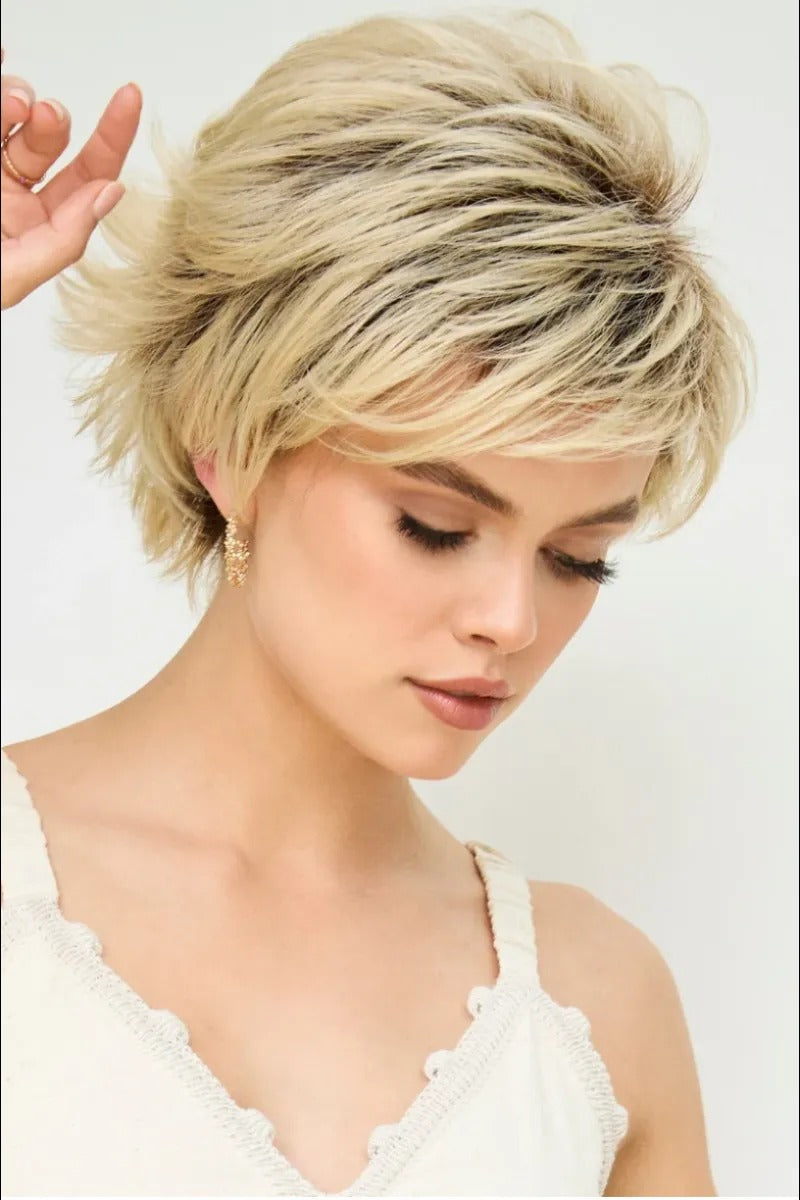 Aubrey from The Orchid Collection is short length heat friendly wig. This straight ready-to-wear wig is a choppy style. Aubrey is a heat friendly wig that combines trendiness and convenience. With its short and choppy style, this wig is perfect for those who want to make a statement. Crafted with high-quality fibers, Aubrey allows for easy styling and experimentation. Making it a must have for anyone looking for a short and trendy look. Aubrey is machine made with adjustable tabs in the back nape area to allow a more comfortable fit. The result is a comfortable fit with a natural look that is both fashionable and easy to wear.