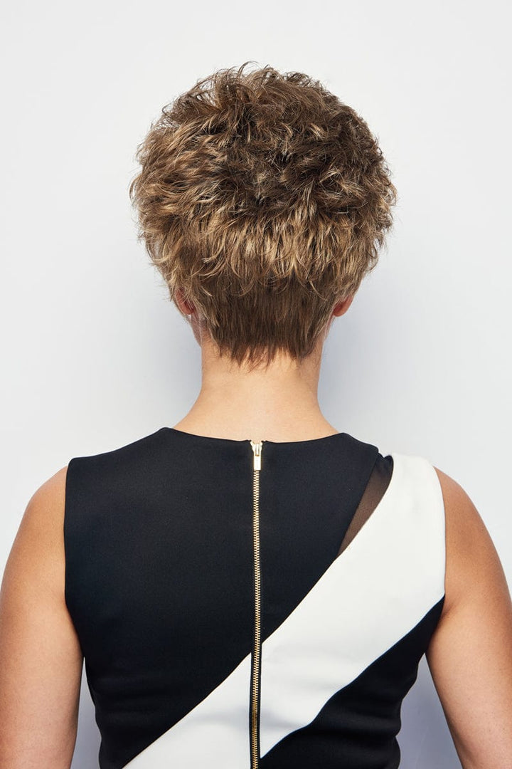 Ready to wear right out of the box, this short, face-framing cut includes a smooth front and top that blend into short textured layers throughout the back and sides. And it only weighs two and a quarter ounces!