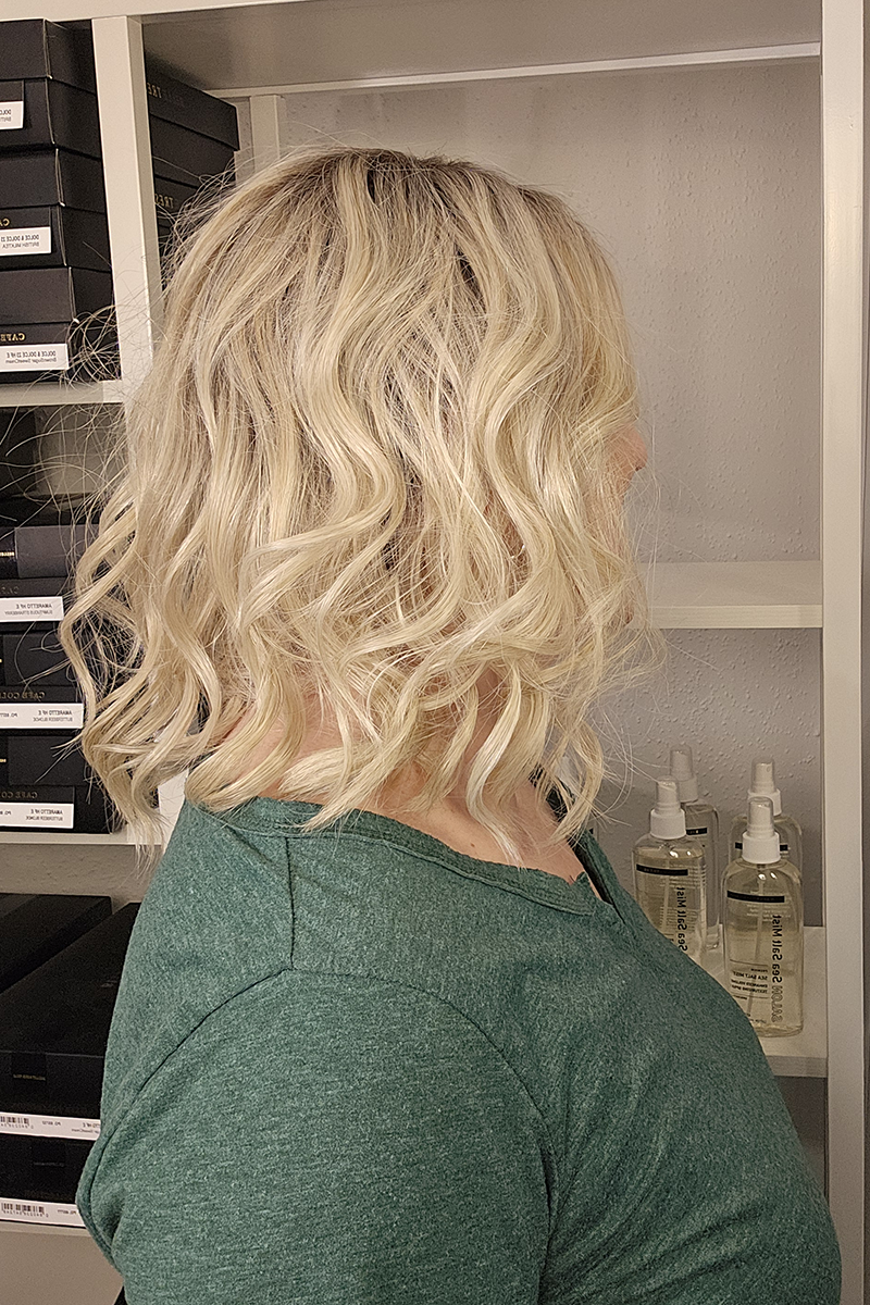 Amaretto is a headful of soft, tousled waves that land just above the collarbone. With natural looking dark roots and a deep side part, this look is a little bit sassy and ever so sweet. Get ready to turn heads with the effortless and stylish Amaretto.