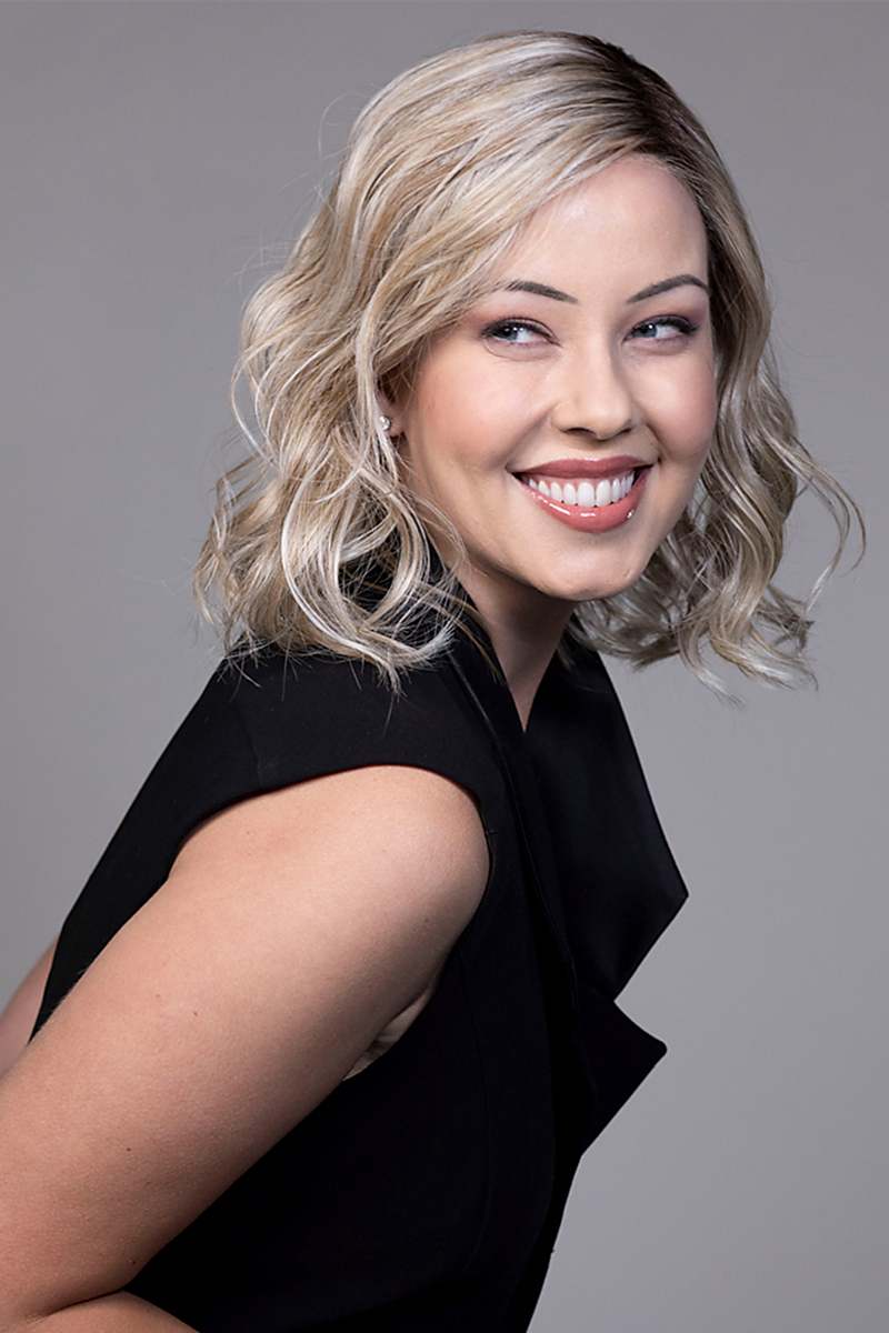 Amaretto is a headful of soft, tousled waves that land just above the collarbone. With natural looking dark roots and a deep side part, this look is a little bit sassy and ever so sweet. Get ready to turn heads with the effortless and stylish Amaretto.
